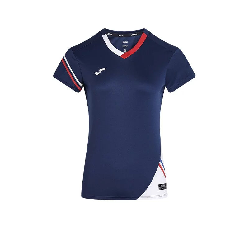 女款網羽V領速乾運動T恤【藏青】